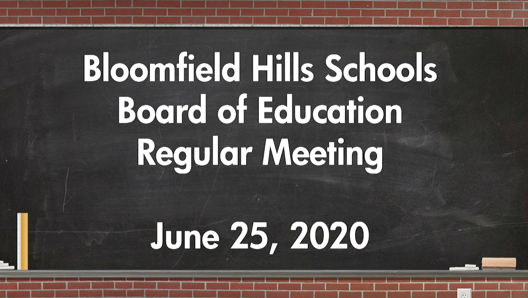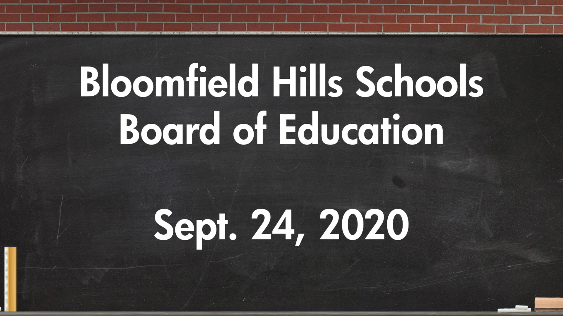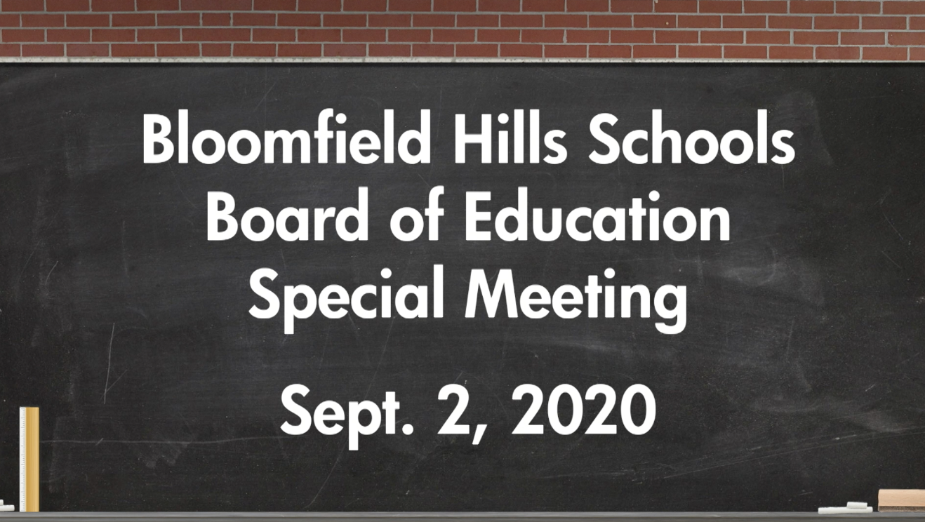 Special Meeting Bloomfield Hills Schools Board of Education September 2, 2020